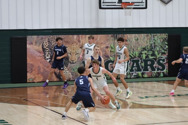 The leading scorers for the Jags were Nathan Tomcak with 25, Chase Luther with 11, Ethan Prusa with 8, Andre Martin with 6, and Dane Meyer and Briggs Ernst with 3. The team in total scored 7 threes. Both Chase and Nathan each had 3, and Dane Meyer had 1. The team had 23 defensive rebounds in total, with Andre leading with 8 and Dane coming in close with 6. When asked how the game was, Coach Janata stated, “It was a back-and-forth game where we struggled to find rhythm on offense, and defensively, we played pretty solid, but Bancroft Rosalie is known for hitting tough shots.”