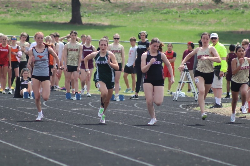 For the girls' side of the track, Isabella Wegner placed 7th in the long jump, 6th in the triple jump, and 7th in the 100-meter dash. Kylie Brichacek placed 4th in discus and 2nd in the triple jump. Maura Cada ran the 200-meter dash and placed 5th in the 100. Peyten Becker placed first in the discus with a throw of 107 feet. Jerzie Haferland ran the 400-meter dash and placed 5th, and Audery Praest ran the 100-meter high hurdles and placed 2nd. Shayla Gall competed in the long jump and ran the 400-meter dash. Brynn Throener did the long jump and the 800-meter run, placing 5th. Reagan Bayer competed in the long jump and the 100-meter dash, and Jordyn Hamata ran the 100-meter high hurdles and the 100. Avery Bayer placed 8th in the triple jump and 6th in the 100-meter high hurdles. Norah Noyd competed in the triple jump and 400-meter dash. Tenley Ernust threw the discus, placing 5th, and threw the shot put as well. The girls' 4x800 team was Jerzie Haferland, Shayla Gall, Norah Noyd, and Dani Dirkschneider, and they placed 7th. The girls' 4x100 placed 5th, and the team was Isabella Wegner, Maura Cada, Kylie Brichachek, and Audery Praest. The final relay team was the 4x400 with Norah Noyd, Brynn Throener, Jerzie Haferland, and Kylie Brichacek.