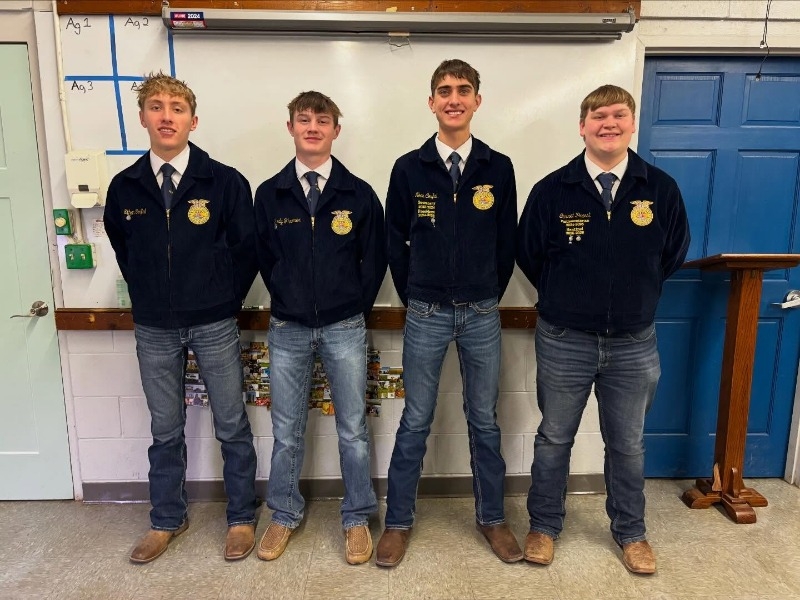 On Thursday, January 22, 34 FFA members went to Central Community College to compete in the first round of District FFA Career Development Events. The chapter competed in seven different events and qualified a team in three! In Natural Resources, Addison Beeks placed 1st overall individually with a purple ribbon. Kylie Dostal and McKenzie Sindelar received a purple ribbon as well. Shayla Gall received a blue ribbon to help the team place 1st overall out of 14 teams. This means these four members will be competing in the Natural Resources event at the Nebraska State FFA Convention in March. The second event the chapter qualified for state in was Ag Mechanics. Garret Praest and Noah Coufal received blue ribbons, and Ethan Coufal received a red ribbon. These three members, along with Brody Throener, placed 3rd as a team out of 20 other teams.