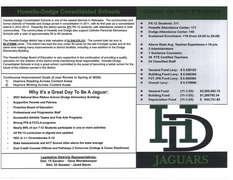 Your name, phone number and email address are kept private and are for the sole use of the Howells-Dodge Consolidated site. For full details, see our privacy and security policy.